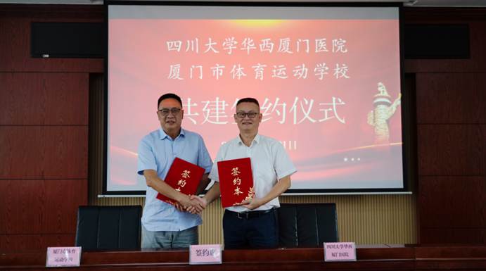 近日,市体育运动学校(简称“市体校”)与四川大学华西厦门医院(简称“华西厦门医院”)合作共建签约仪式在市体校隆重举行,市体育局党组成员、副局长杜新飞及市体育事业发展中心主任袁扬应邀出席并见证签约。此次合作旨在进一步整合区域医疗资源与体育教育优势,彰显社会担当,为市体校学子搭建更加专业的医疗保障体系,同时推动华西厦门医院运动康复领域实践创新,开启双方优势互补、协同发展的全新篇章。