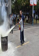 油盆灭火实操演练,在林锦垣教官的专业指导下,同学们轮番上阵,亲身体验灭火器的操作。同学们按照“提、拔、握、压”四字要领,成功扑灭火焰,有效地将理论知识与实际操作结合起来。