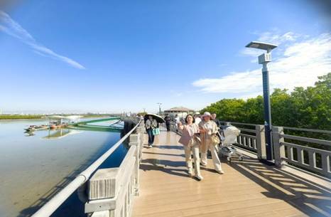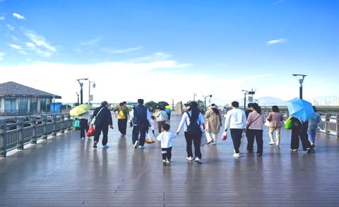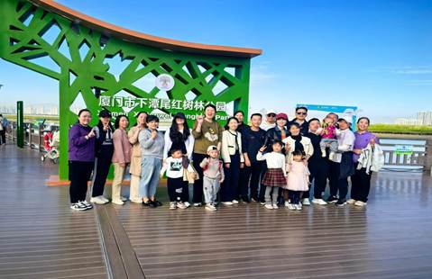 秋日的下潭尾红树林公园,天光云影与斑斓林色相映成趣,碧海、滩涂与海岸线被晕染成诗意长卷,宛如一幅徐徐铺展的滨海盛景图。教职工与同事、家人漫步于蜿蜒的木栈道上,听海风轻拂枝叶,看白鹭嬉戏浅滩,赏红树林叠翠流金,在和煦阳光与温柔海风中尽情拥抱自然、滋养身心。